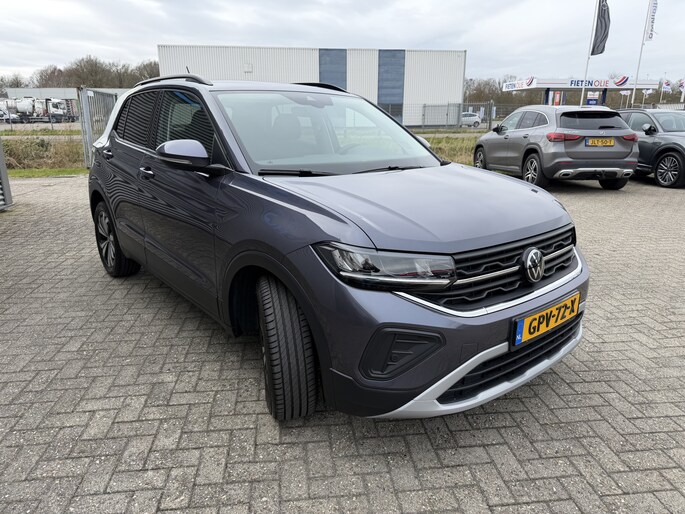 Nieuw binnen bij AutoHuiz BV Winschoten, een zo goed als nieuwe en rijk uitgeruste Volkswagen T-Cross 1.0 TSI Life Edition in de kleur Smoky Gray Metallic.