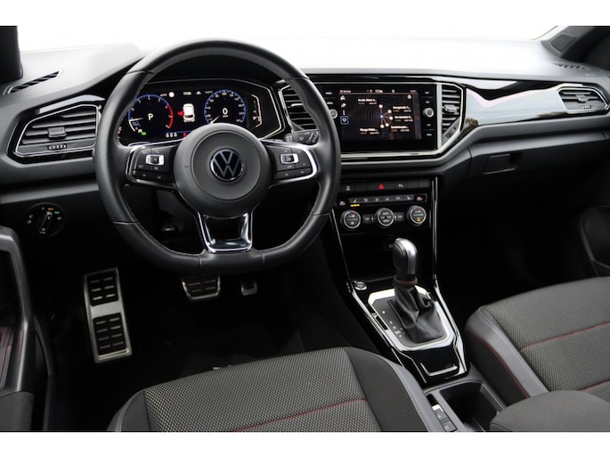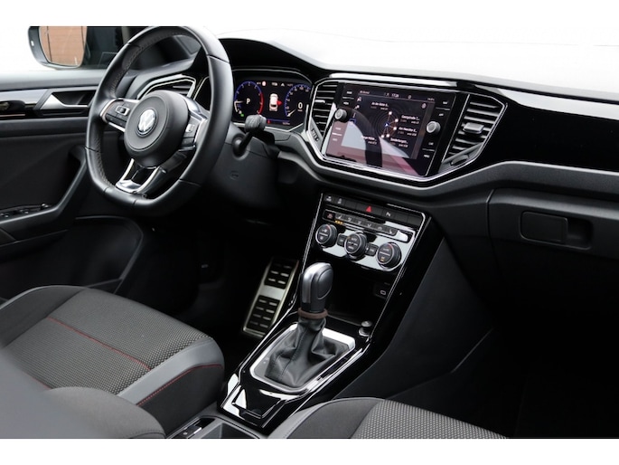 De buitenkant van de Volkswagen T-Roc is voorzien van subtiele maar stijlvolle details, zoals de portiergrepen in de kleur van de carrosserie. Dit geeft de auto een strakke en moderne uitstraling. Ook het interieur is afgewerkt met hoogwaardige materialen, waaronder decordelen in Piano Black en zwart hoogglans. Dit zorgt voor een luxueuze en comfortabele rijervaring.