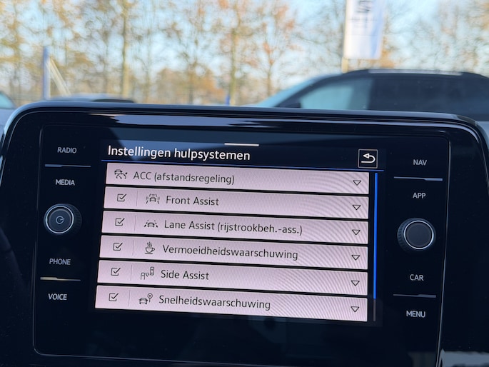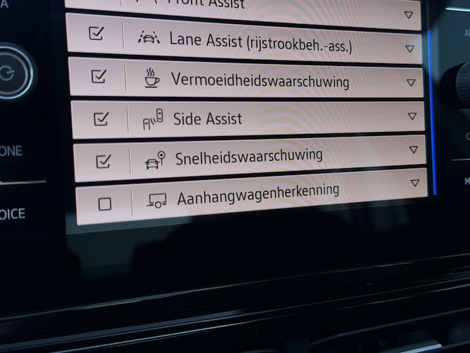 Aan boord van deze Volkswagen houden verschillende geavanceerde systemen voor u de weg in de gaten. Ze waarschuwen u voor noodsituaties en kunnen in een aantal gevallen ook zelf ingrijpen. Een belangrijke bijdrage aan de veiligheid onderweg levert de verkeersbord-detectie in deze Volkswagen. Het Lane-keeping systeem doet precies wat nodig is: waarschuwen en corrigeren bij onbedoelde overschrijding van de rijstrooklijnen. De sensor van het forward collision warning-systeem registreert permanent de afstand tot voorliggers en grijpt in als een botsing dreigt. Ook helpen het dodehoekdetectie, hill hold functie, brake assist, vermoeidheidsherkenning en bandenspanningcontrolesysteem, uw rit tot een veilige rit te maken.