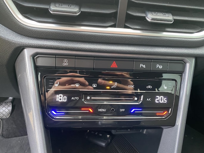 - Middenarmsteun met opbergvak voor, twee uitstroomopeningen voor de achterpassagiers en twee bekerhouders achter