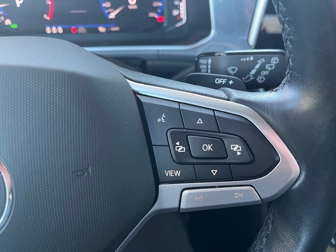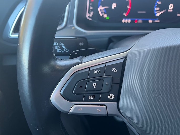 Alle functies die je onderweg nodig hebt, worden permanent geregistreerd en zijn afleesbaar op het digitale dashboard. De achteruitrijcamera brengt precies in zicht wat zich achter je bevindt en toont een glashelder beeld op hoge resolutie. Een geluidssignaal waarschuwt hoeveel ruimte je nog hebt. Adaptive cruise control houdt de ingestelde snelheid vast en houdt automatisch afstand tot jouw voorligger. Hoe is het met de banden, de accu en andere onderdelen? Connected Services maakt het inzichtelijk, 24/7 via de app. Een belangrijke veiligheidsvoorziening is de bediening van het audiosysteem via knoppen op het stuur. Dab-ontvangst geeft daarbij een kraakheldere ontvangst. Ook is de Volkswagen uitgerust met: automatische airconditioning, schakelpaddles aan het stuur, draadloos opladen, regensensor, automatisch dimmende binnenspiegel en centrale deurvergrendeling met afstandsbediening.