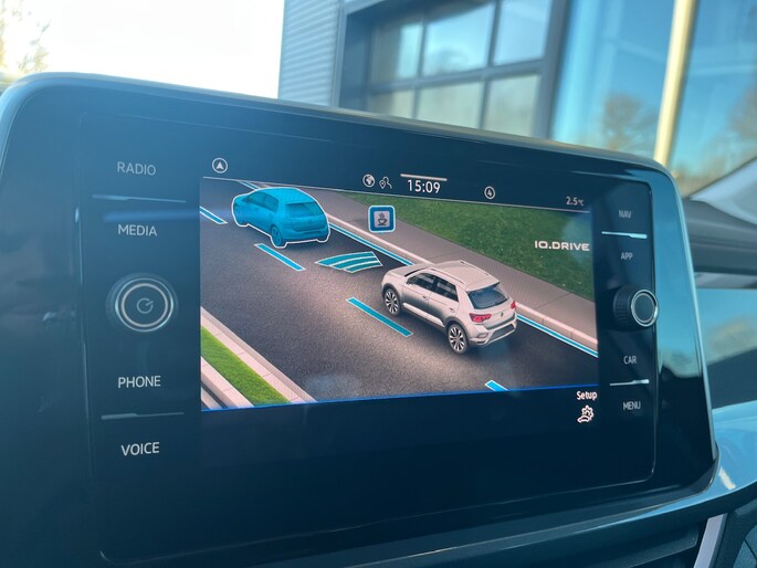 In deze auto zijn verschillende technologieën aanwezig die voor jou het verkeer en de omgeving in de gaten houden en die desnoods ook kunnen remmen of bijsturen. Deze Volkswagen T-Roc is ook behulpzaam als het gaat om een rechte koers. Het Lane-keeping systeem signaleert en corrigeert als je onbedoeld de rijstrooklijnen dreigt te overschrijden. De forward collision warning reduceert het gevaar van een botsing met een voorligger significant. Op lange ritten voorkomt de vermoeidheidsassistent dat jouw concentratie afneemt. In deze Volkswagen vinden we verder een hill hold functie, brake assist en bandenspanningcontrolesysteem.