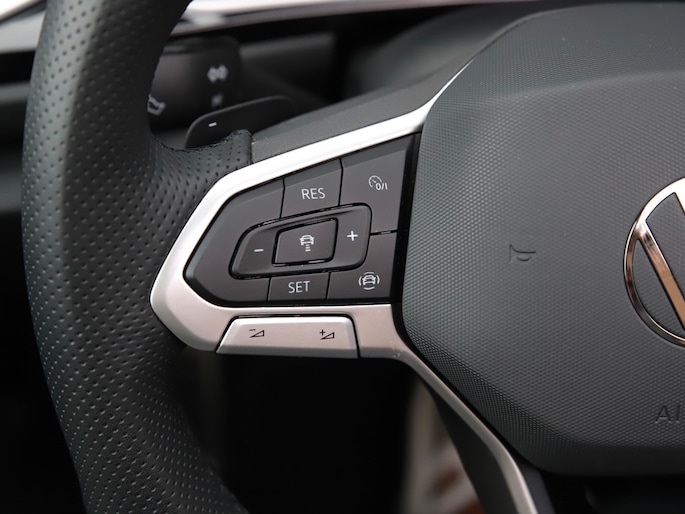 Het door ons haast verplichte R-Line exterieur pakket bevat onder meer zwarte gepolijste 18 inch ‘Nevada’ lichtmetalen velgen, achterspoiler, chrome accenten rondom, voor- en achterbumpers R-Line uitgevoerd en de royale dorpelverbreders geven deze uitvoering een sportief en chique voorkomen.