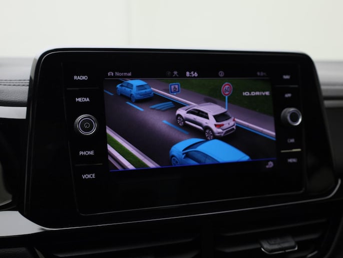 Deze Volkswagen is voorzien van verschillende intelligente veiligheidsvoorzieningen. Ze kijken tijdens het rijden als het ware met u mee, ze signaleren potentieel gevaarlijke situaties en in een aantal gevallen kunnen ze ook ingrijpen. In het instrumentarium kunt u bovendien de verkeersborden zien die u onderweg tegenkomt. Zo helpt deze Volkswagen u om veiliger te rijden. Deze Volkswagen T-Roc is ook behulpzaam als het gaat om een rechte koers. Het Lane-keeping systeem signaleert en corrigeert als u onbedoeld de rijstrooklijnen dreigt te overschrijden. Vermoeidsheidsherkenning neemt tekenen van vermoeidheid waar bij de bestuurder. Het systeem voorkomt dat er daardoor ongelukken gebeuren. Dankzij veiligheidsvoorzieningen als dodehoekdetectie, front assist, brake assist en bandenspanningcontrolesysteem, bent u steeds veilig onderweg.