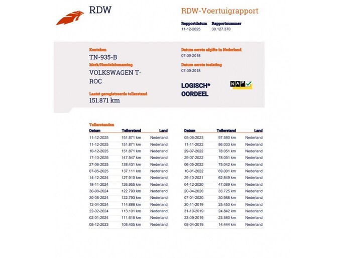 Kilometerstand gecontroleerd