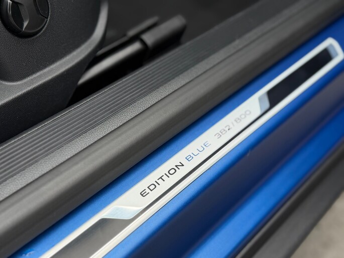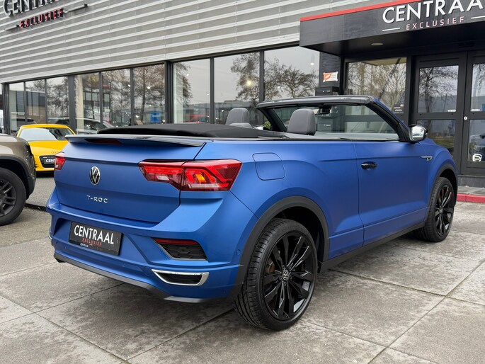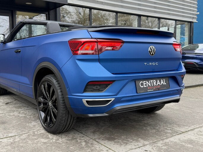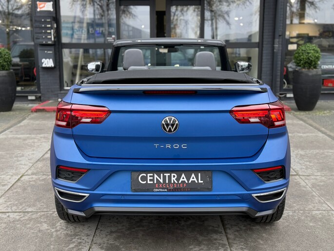 De T-Roc Cabriolet R-Line Edition Blue+ nr. 382/800. Deze auto voldoet aan alles wat hip en cool is. Een bijzondere blauwe lak (Matt Ravenna), bijvoorbeeld. Of wat te denken van het R-Line sportpakket met andere bumpers, iets straffer onderstel, grotere 19 inch- velgen en sportinterieur. Het zit allemaal op de T-Roc R-Line Edition Blue. Oh, en check alle hoogglans details voor de grille, spiegels, velgen en uitlaten.
