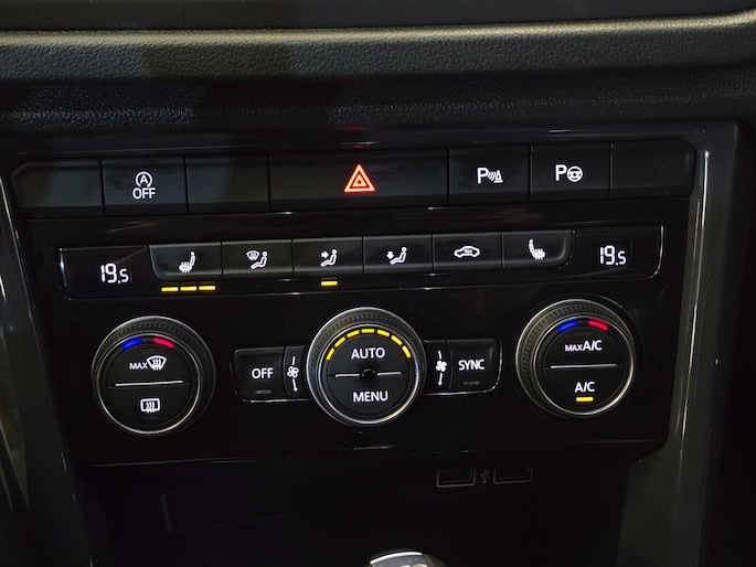 Voor het overzicht tijdens iedere rit is deze Volkswagen T-Roc voorzien van een gemakkelijk afleesbaar digitaal dashboard. Adaptive cruise control is veilig en comfortabel. De snelheidsregelaar houdt automatisch afstand tot het voertuig dat voor u rijdt. Waarheen gaat de reis? Het navigatiesysteem brengt u trefzeker ter plekke! De auto is ook uitgevoerd met automatische airconditioning. Een andere zender kiezen. Het geluid harder of zachter zetten. Met de audiobediening op het stuurwiel bedient u de radio veilig met uw handen aan het stuur. Natuurlijk behoren parkeersensoren achter, regensensor, automatisch dimmende binnenspiegel, lederen stuur, centrale deurvergrendeling met afstandsbediening en boordcomputer ook tot de uitrusting van deze complete auto.