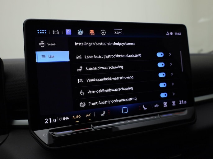 Geavanceerde technische systemen houden tijdens elke rit het verkeer in de gaten en reageren op potentieel gevaarlijke situaties. In het instrumentarium kunt u bovendien de verkeersborden zien die u onderweg tegenkomt. Zo helpt deze Volkswagen u om veiliger te rijden. Met het Lane-keeping systeem komt u nooit per ongeluk buiten de rijstrook. Het laatste wat u wilt is dat u achter het stuur indommelt. Om dat te voorkomen is deze auto uitgerust met vermoeidheidsherkenning. Bovenop deze veiligheidsfeatures heeft deze Volkswagen bovendien dodehoekdetectie, brake assist en bandenspanningcontrolesysteem.