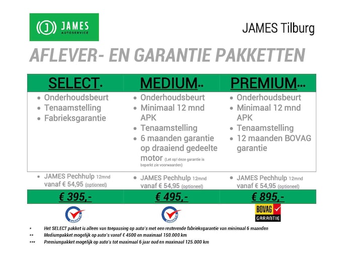 JAMES Autoservice Tilburg is al meer dan 35 jaar een begrip in Tilburg en omgeving. Bezoek onze website www.jamestilburg.nl voor meer informatie over ons bedrijf, ons actuele aanbod, aanvullende foto’s en een 360° video van onze auto’s.
