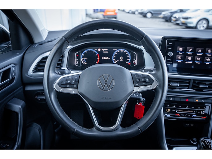 De kenners van het merk weten het al lang: een Volkswagen biedt kwaliteit. Niet alleen in duurzaamheid, maar ook in de ongeëvenaarde combinatie van rijkwaliteiten, comfort en veiligheid steekt een VW altijd met kop en schouders boven de concurrentie uit. Het bewijs? Kijk maar eens goed naar deze T-Roc. Een belangrijke eigenschap van iedere Volkswagen is zijn duurzaamheid. Dat ziet u ook aan deze T-Roc. Ondanks zijn zuinigheid, levert de benzinemotor van deze Volkswagen uitstekende prestaties. Dankzij de stoelverwarming heeft u in deze auto nooit meer last van een koude rug of koude benen. Ook 17 inch lichtmetalen velgen, LED koplampen, trailer assistent, extra getint glas, in delen neerklapbare achterbank en LED-achterlichten horen tot de voorzieningen op deze auto. Uw rit wordt comfortabel en veilig gemaakt door het digitale dashboard dat alles projecteert wat u wenst in de digitale wereld van mobiliteit. Een handige optie is de achteruitrijcamera. Achteruitrijden, inparkeren en manoeuvreren gaat gemakkelijker dan ooit. Met adaptive cruise control houdt de auto zelfstandig afstand tot uw voorligger. Een veiligheidsverhogende optie waarmee u comfortabel onderweg bent. Connected Services voegt nog meer comfort en veiligheid toe aan deze auto. Terwijl het full map navigatiesysteem de ideale route voor u uitstippelt, geniet u van de kwaliteit van het audiosysteem met DAB-ontvangst. De bediening is bovendien gemakkelijk via knoppen op het stuur. De Volkswagen is standaard voorzien van: automatische airconditioning, draadloos opladen, regensensor, automatisch dimmende binnenspiegel, lederen stuur en centrale deurvergrendeling met afstandsbediening. Tijdens de rit wordt u als bestuurder ondersteund door verschillende systemen die de weg en uw omgeving in de gaten houden. In het instrumentarium laat de verkeersborddetectie de actuele verkeersborden zien. Een camera houdt de juiste koers binnen de rijstrook in de gaten en het Lane-keeping systeem corrigeert bij afwijkingen. Onbedoeld bumperkleven is er niet bij, dankzij de forward collision warning. Die waarschuwt direct als een botsrisico met uw voorligger dreigt. Dankzij veiligheidsvoorzieningen als hill hold functie, brake assist, vermoeidheidsherkenning en bandenspanningcontrolesysteem, bent u steeds veilig onderweg. Natuurlijk kunt u de kwaliteiten van deze auto pas echt beoordelen na een proefrit. Neem nu contact met ons op, dan zetten wij hem voor u klaar.