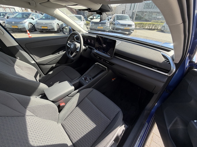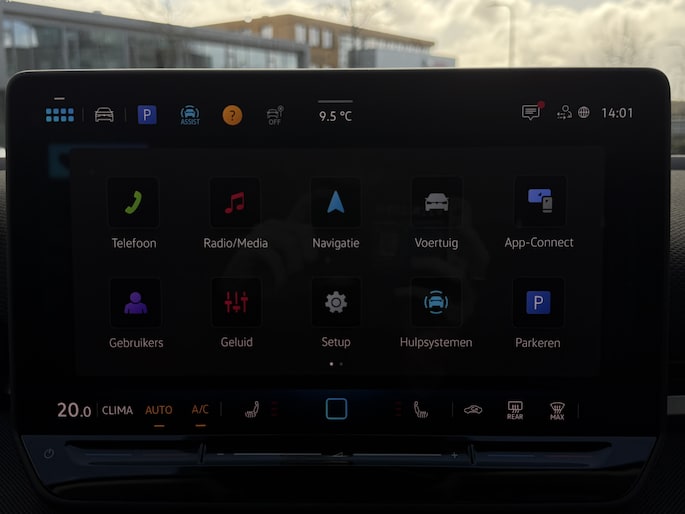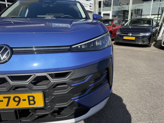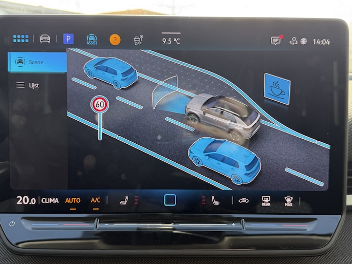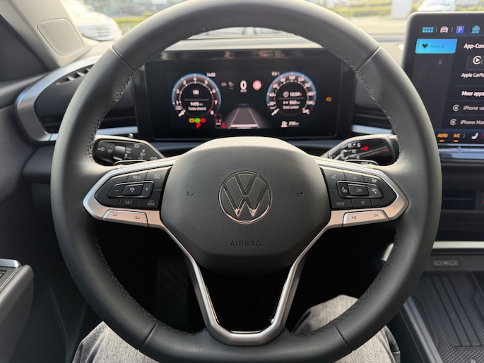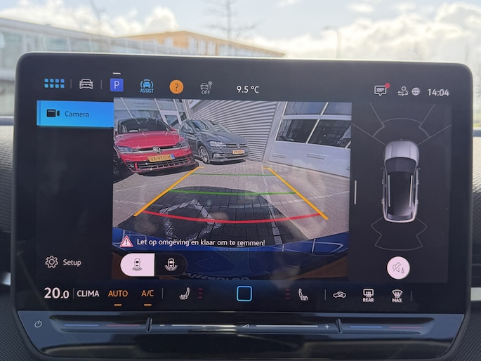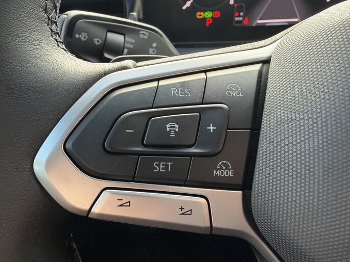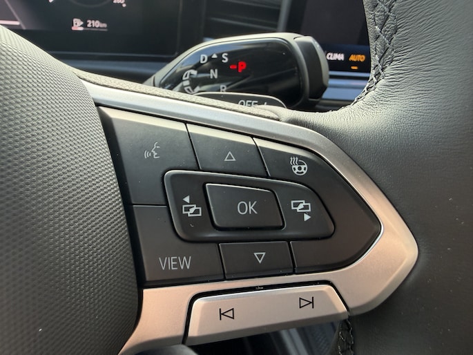 Wat ook opvalt, is de strakke en overzichtelijke informatie die het digitale dashboard levert. Kom maar, kom maar, kom maar... ho! Prettig hoor, zo'n achteruitrijcamera. Met adaptive cruise control houdt de auto zelfstandig afstand tot jouw voorligger. Een veiligheidsverhogende optie waarmee je comfortabel onderweg bent. Hoe is het met de banden, de accu en andere onderdelen? Connected Services maakt het inzichtelijk, 24/7 via de app. Naast de routeinformatie van het App-connect navigatiesysteem kan je muziek via het audio-installatiesysteem ook online beluisteren via bluetooth. Radio komt via DAB+, dus ook hier hoge kwaliteit. Deze Volkswagen is voorzien van kruisend verkeer detectie, automatische airconditioning, draadloos opladen, regensensor, automatisch dimmende binnenspiegel en lederen stuur.