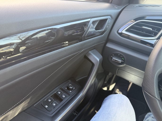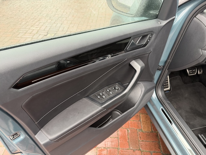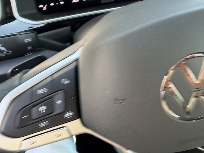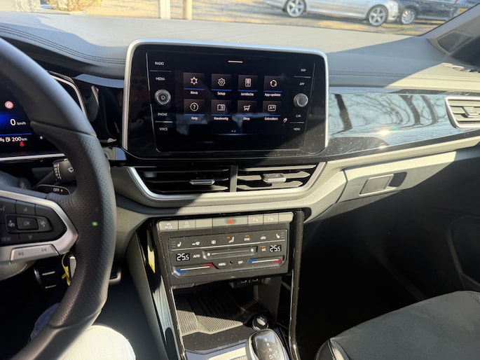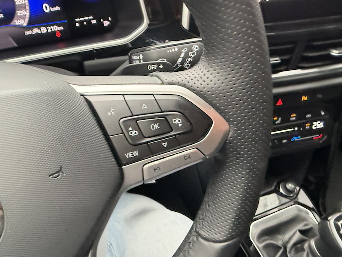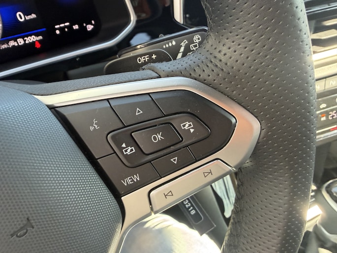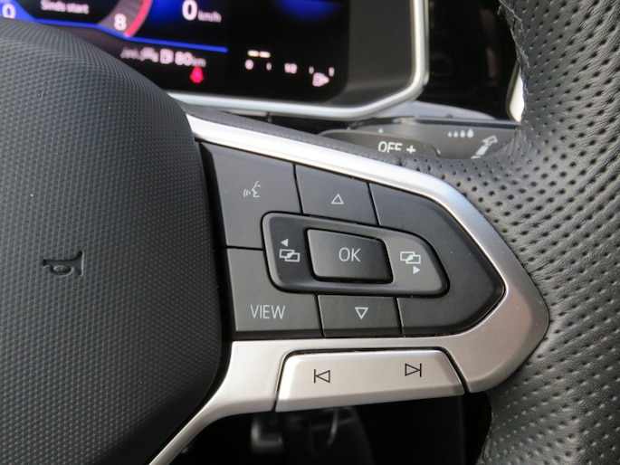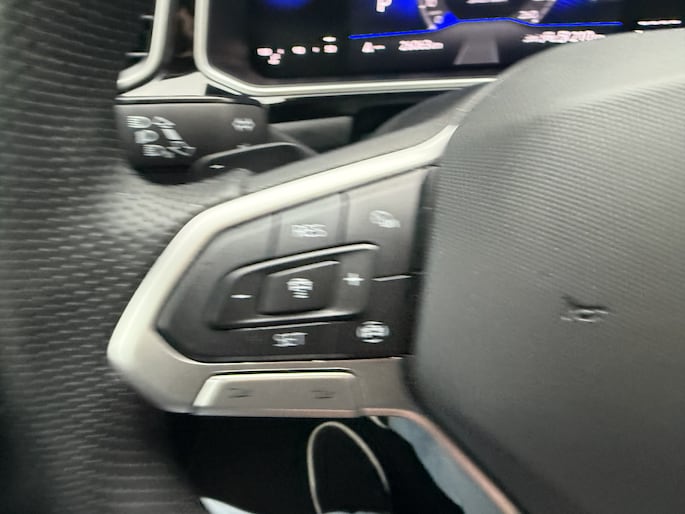 Stap in en ervaar het luxe R-Line interieur met zwarte hemelbekleding, sportstoelen met uitschuifbaar zitvlak, massagefunctie, sfeerverlichting en een multifunctioneel sportstuur. Alles is gericht op comfort en rijplezier, elke rit opnieuw.