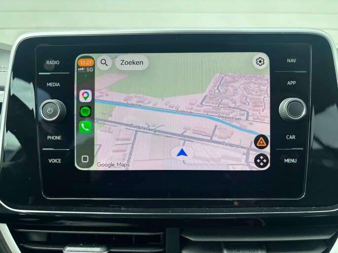 Fraaie VW T-Roc in de sportieve R-Line Edition-uitvoering, met krachtige 1.5 turbo benzinemotor, gekoppeld aan een soepele 7-traps automatische versnellingsbak. Deze T-Roc heeft het sportieve R-Line pakket (volledig) met zeer veel opties, waaronder 18 inch lichtmetalen velgen. Deze T-Roc is onder andere voorzien van een Digital Cockpit Pro (digitaal instrumentenpaneel), touchscreen audiosysteem met ondersteuning van Apple Carplay + Android Auto, adaptieve cruise control, elektrische achterklep, half lederen bekleding, parkeerassistent i.c.m. achteruitrijcamera en parkeersensoren voor + achter, verwarmbare voorstoelen, Drive Mode Selection (sportpakket), IQ.LIGHT (LED Matrix) koplampen (met horizontale verbindende LED-strip, dynamic light assist, en achterlichten met dynamische knipperlichten), dodehoeksensoren, en R-Line Top-sportstoelen. Met Apple Carplay of Android Auto kunt u o.a. het navigatiesysteem van uw smartphone op het touchscreen in de auto gebruiken.