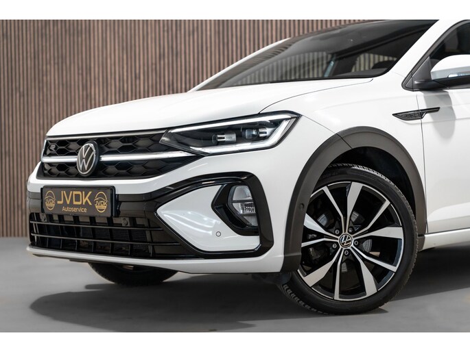 Een auto is een belangrijke aankoop. Niet alleen vanwege het geld, maar ook omdat uw auto verweven is met uw dagelijks leven. Ga maar na, uw auto is bij veel belangrijke gebeurtenissen in uw leven betrokken. Dan is het goed om te weten dat u altijd van uw auto op aan kunt. Volkswagen is ontworpen om uw degelijke metgezel te zijn, iedere dag opnieuw. De R-Line styling maakt deze Volkswagen Taigo echt áf. Het zijn de degelijkheid van de constructie en de doordachtheid van het ontwerp die ervoor zorgen dat een Volkswagen jarenlang begeerlijk blijft. Zoals deze Taigo, bijvoorbeeld. De aandrijving van deze Volkswagen wordt verzorgd door een driecilinder motor en een automatische transmissie. 's Winters op pad gaan kan een behoorlijke uitdaging zijn. Daarom is deze Volkswagen Taigo voorzien van weldadige verwarmbare voorstoelen. Wat een licht geeft dat glazen elektrisch bedienbare panoramadak. Voorzien van matrix LED-verlichting. De auto dimt precies dat deel van de lichtstraal waar de voor- of tegenliggers in rijden. De overige segmenten blijven aan en verlichten de weg. U wordt in deze auto ook getrakteerd op 17 inch lichtmetalen velgen, geluidsisolerende ramen, in delen neerklapbare achterbank, LED-achterlichten en verstelbare lendensteunen.
