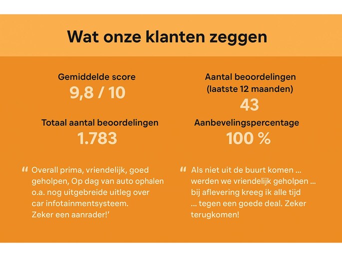 Wij zijn een enthousiast familiebedrijf met de service van een dorpsgarage. Benieuwd naar hoe onze klanten een aankoop bij ons ervaren? Bekijk dan eens onze onafhankelijke reviews op de website. Hier zijn wij vanzelfsprekend enorm trots op. ( www.edisonauto.nl/klantenvertellen )