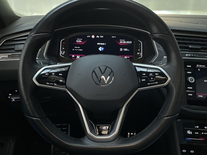 Wat deze auto zo aantrekkelijk maakt? Om te beginnen natuurlijk zijn tijdloze design en zijn innovatieve techniek. Het is een auto met uitstekende rijeigenschappen, die tegelijk efficiënt en comfortabel is. Maar het belangrijkste is het logo dat er op staat. Want met een Volkswagen weet je dat je altijd kwaliteit krijgt en dat geldt dus ook voor deze Tiguan. De sportieve en hightech ambiance is geheel te danken aan de R-Line styling. Een belangrijke eigenschap van iedere Volkswagen is zijn duurzaamheid. Dat zie je ook aan deze Tiguan. De aandrijving van deze Volkswagen wordt verzorgd door een viercilinder motor en een automatische transmissie. Nooit meer stramme spieren bij het uitstappen: daar zorgen de comfortstoelen voor! Voor extra lichtinval en een frisse luchtstroom zorgt het elektrisch bediende panoramadak. De bagageruimte is toegankelijk via een comfortverhogende elektrische achterklep. De matrix LED-verlichting in de koplampen bestaat uit een raster van lichtpunten met maximale opbrengst. Bij tegenliggers past het systeem precies die punten aan die hinderlijk kunnen zijn. Je behoudt maximaal zicht! In deze Volkswagen profiteer jij onder andere ook van: geluidsisolerende ramen, dakspoiler, in delen neerklapbare achterbank, LED-achterlichten, verstelbare lendensteunen en snelheidsafhankelijke stuurbekrachtiging.