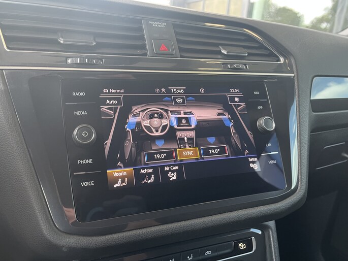 Snelheid, brandstofinfo, noem maar op. Het digitale dashboard houdt je permanent op de hoogte. Goed en overzichtelijk. Overzichtelijk en veilig parkeren met de achteruitrijcamera. Overal en altijd. Met adaptive cruise control houdt de auto zelfstandig afstand tot jouw voorligger. Een veiligheidsverhogende optie waarmee je comfortabel onderweg bent. In deze Tiguan Allspace vind jij niet alleen schakelaars op het stuur om het navigatiesysteem te bedienen en het audiosysteem met DAB-ontvangst, maar er is ook spraakbediening. Kabels niet nodig, de draadloze telefoonlader laadt je smartphone al rijdend bij. Wat je ook in deze auto kunt vinden zijn achteropkomend verkeer waarschuwing, automatische airconditioning, schakelpaddles aan het stuur, regensensor, keyless entry en automatisch dimmende binnenspiegel.