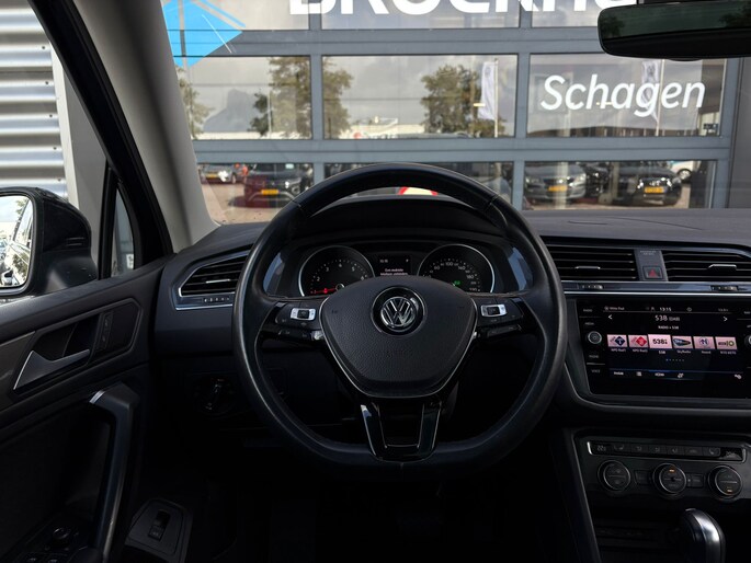 Het is een van de kernwaarden van het merk Volkswagen: veiligheid. Achter het stuur van een Volkswagen heeft u altijd de controle, u bent heer en meester en uw auto doet altijd wat u wilt. Met dat uitgangspunt is ook deze Tiguan Allspace ontwikkeld. Het zijn de degelijkheid van de constructie en de doordachtheid van het ontwerp die ervoor zorgen dat een Volkswagen jarenlang begeerlijk blijft. Zoals deze Tiguan Allspace, bijvoorbeeld. Deze Volkswagen heeft een benzinemotor die zuinig is, maar toch hoge prestaties levert. De massagefunctie van de verwarmbare voorstoelen is een heerlijke extra optie, waarmee u uw rug en die van de bijrijder een groot plezier doet. Schouders en onderrug krijgen een VIP-behandeling door de comfortstoelen. Licht, luxe en gemak komen samen in de vorm van het elektrische bediende glazen panoramadak. De elektrisch bedienbare achterklep opent met een druk op de knop. Bij de uitrusting van deze auto horen onder meer 17 inch lichtmetalen velgen, LED-dagrijverlichting, extra getint glas, in delen neerklapbare achterbank, LED-achterlichten en verstelbare lendensteunen. Met adaptive cruise control houdt deze auto automatisch afstand tot uw voorligger. Gemak dient de mens. Dankzij de spraaksturing bedient u de belangrijkste functie met uw stem. Met het navigatiesysteem kiest u de snelste route naar uw eindbestemming. Bij het wisselen van rijbaan kan een dode hoek ontstaan waardoor achterliggers te dichtbij kunnen komen. De achteropkomend verkeer waarschuwing geeft in dat geval automatisch een signaal. Bij de luxe van deze auto hoort ook automatische airconditioning. Ook sportstuur met schakelpaddels, draadloos opladen, DAB ontvangst, parkeersensoren voor en achter, regensensor en keyless entry horen tot de voorzieningen op deze auto. De Volkswagen Tiguan Allspace is uw trouwe partner onderweg, want hij houdt continu voor u de situatie op en om de weg in de gaten. Volautomatische veiligheidssystemen kunnen daarbij ingrijpen om u voor gevaarlijke situaties te behoeden. Verkeersborddetectie herkent tijdelijke en permanente verkeersborden langs en boven de weg. Voorzien van het Lane-keeping systeem. Ofwel: blijf automatisch in je baan. Onbedoeld bumperkleven is er niet bij, dankzij de forward collision warning. Die waarschuwt direct als een botsrisico met uw voorligger dreigt. Dankzij veiligheidsvoorzieningen als hill hold functie, brake assist, vermoeidheidsherkenning en bandenspanningcontrolesysteem, bent u steeds veilig onderweg. Klinkt dit allemaal aantrekkelijk? Maak dan een afspraak met onze verkoper!