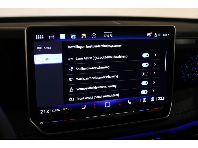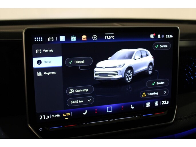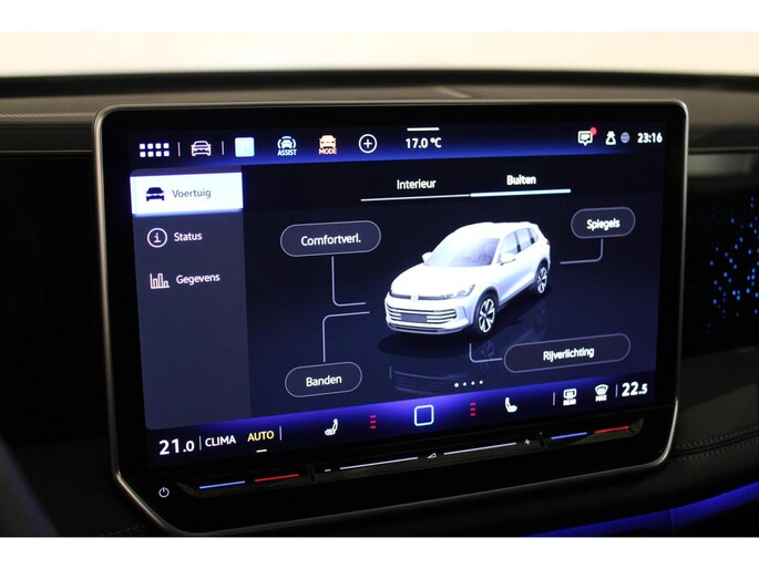 Ook binnenin ademt deze Tiguan sportiviteit en luxe. De gave R-Line schaalstoelen bieden niet alleen perfecte steun, maar zijn ook voorzien van verwarming en massagefunctie voor extra comfort. De zwarte hemelbekleding, schuif/kantel panorama dak en sfeervolle afwerking versterken de sportieve ambiance, terwijl de stuurverwarming zorgt dat je in elk seizoen comfortabel onderweg bent.