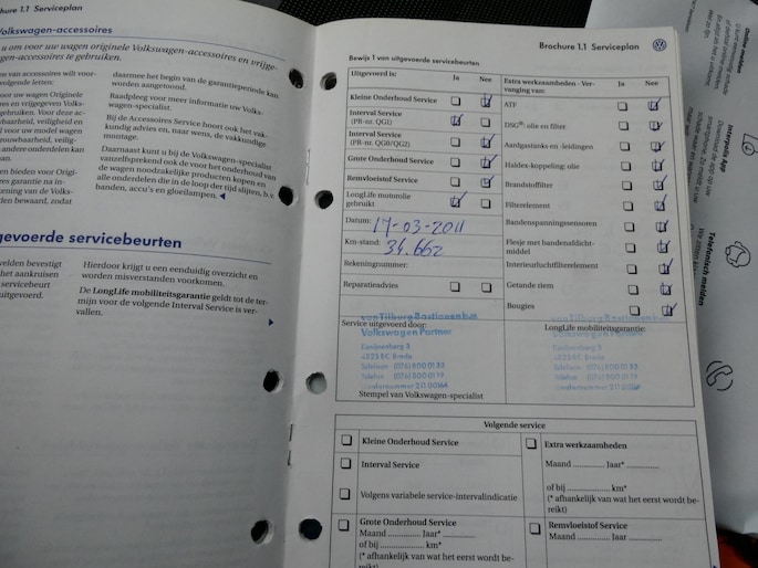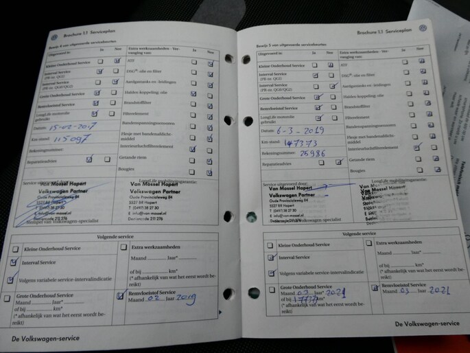 Onderhoudsboekjes: Aanwezig