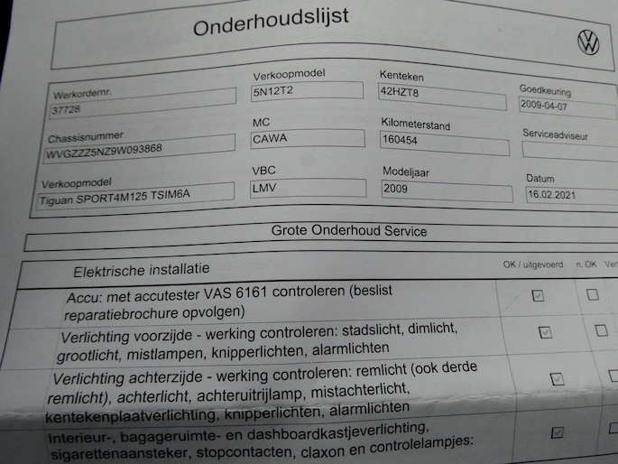- Onderhoudshistorie aanw.
