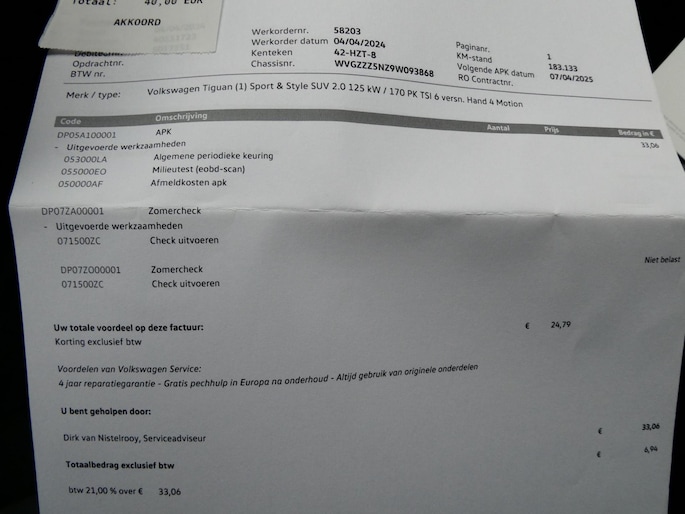 Kilometerstand gecontroleerd