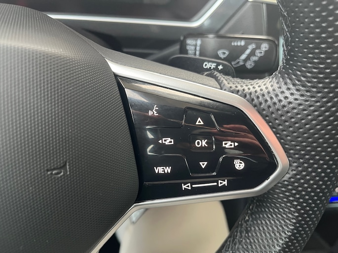 Dankzij het digitale dashboard in deze auto kan je de interface van jouw cockpit personaliseren. De functie van deze 360 graden camera is vooral nuttig in smalle straatjes waar het zicht beperkt is. Adaptive cruise control is een comfortabele en veilige optie. Het systeem reguleert de snelheid en houdt automatisch afstand tot jouw voorligger. Spraaksturing is onderdeel van de uitrusting van deze auto. Met jouw stem kun jij de belangrijkste voertuigfuncties bedienen. Dankzij Connected Services weet je precies waar je auto geparkeerd staat. Ook andere functies, zoals bandenspanning en brandstofniveau, zijn via de app altijd onder handbereik. Deze Volkswagen is voorzien van navigatiesysteem, achteropkomend verkeer waarschuwing, automatische airconditioning, schakelpaddles aan het stuur, DAB ontvangst en regensensor.