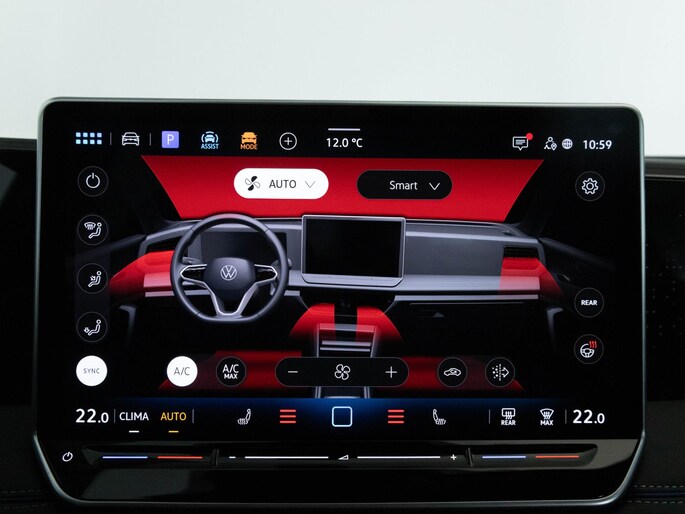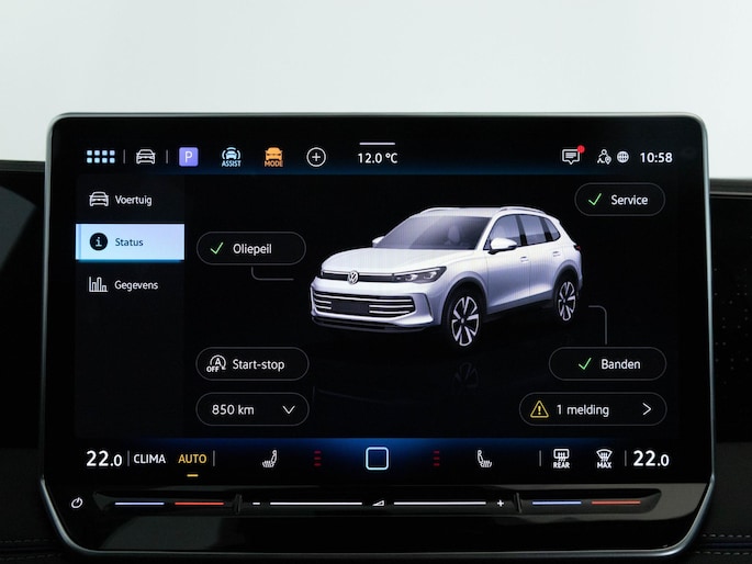 Snelheid, omgevingsinfo, navigatie en communicatie... Het digitale dashboard geeft alles realtime weer. Wat een gemak, die achteruitrijcamera. Alles in beeld zonder capriolen. Adaptive cruise control houdt de ingestelde snelheid vast en houdt afstand tot het voertuig voor je. Dankzij de spraaksturing bedien jij verschillende functies zonder jouw handen van het stuur te halen. Locatie, motorconditie, storingen... via Connected Services krijg je alle vitale info over de auto door. Ook handig bij pech! De Volkswagen is standaard voorzien van: navigatiesysteem, kruisend verkeer detectie, electronic climate control, draadloos opladen, DAB ontvangst en regensensor.
