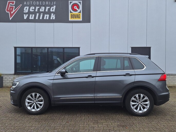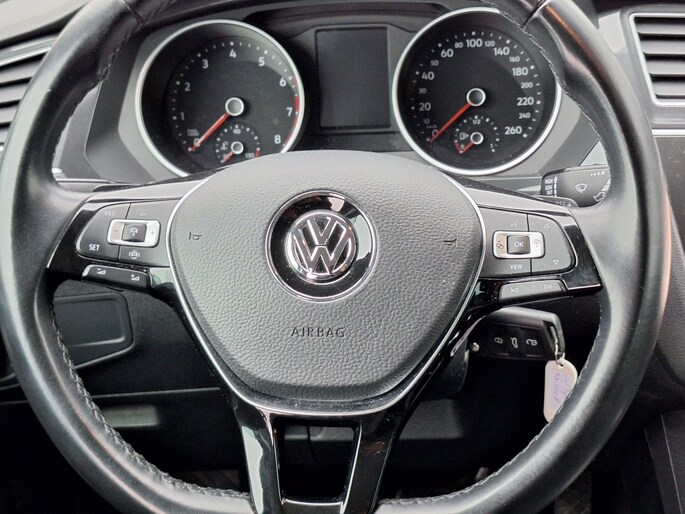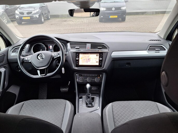 Volkswagen Tiguan 1.5 TSI met automaat en de nodige opties. Bij de zeer complete uitrusting van deze auto behoren ook adaptieve mistlampen, in hoogte verstelbare voorstoelen, extra getint glas, in delen neerklapbare achterbank, LED-achterlichten en verstelbare lendensteunen.