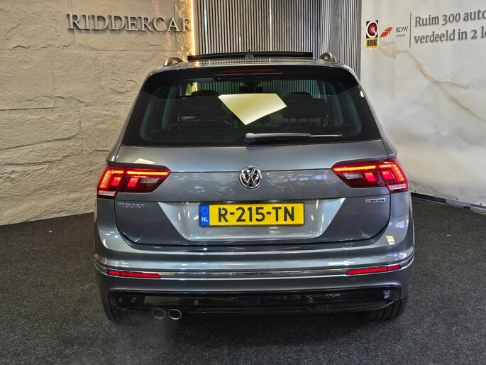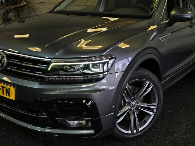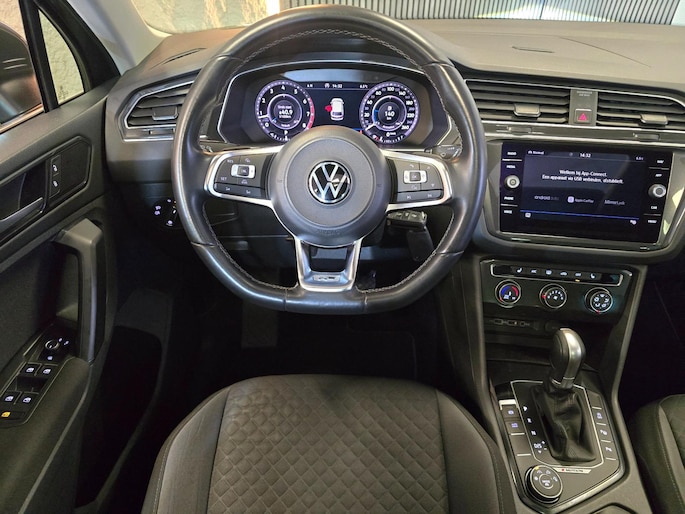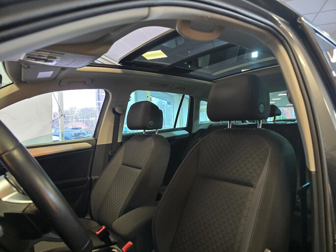 Een Volkswagen pik je er altijd uit, want je herkent hem aan zijn dynamische styling, aan zijn degelijke bouw en aan zijn sportieve lijnen. Dat geldt ook voor deze Tiguan, die met zijn eigentijdse design helemaal past in het moderne straatbeeld. Met de sportieve R-Line styling is deze Volkswagen Tiguan een lust voor het oog. Niet voor niets is de vraag naar gebruikte Volkswagens zo groot, want de kwaliteit staat ook na een aantal jaren nog buiten kijf, zoals aan deze Tiguan duidelijk te zien is. Met een viercilinder motor en een automatische transmissie beschikt deze Volkswagen over uitstekende prestaties. Het elektrisch bediende glazen panorama dak laat een weelde van licht naar binnen vallen. En aan de achterzijde opent u het elektrisch bedienbare achterklep met één simpele klik. Stoelverwarming maakt deel uit van de rijke uitrusting van deze auto. De uitmonstering van deze auto wordt gecompleteerd door onder meer LED koplampen, extra getint glas, in delen neerklapbare achterbank, LED-achterlichten, verwarmde ruitensproeiers en snelheidsafhankelijke stuurbekrachtiging.