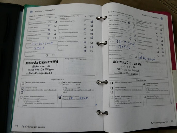 Onderhoudsboekjes: Aanwezig