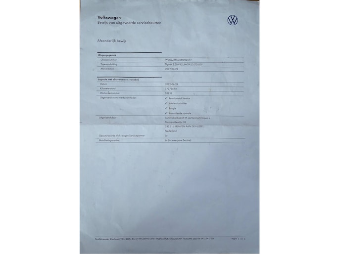 Kilometerstand gecontroleerd