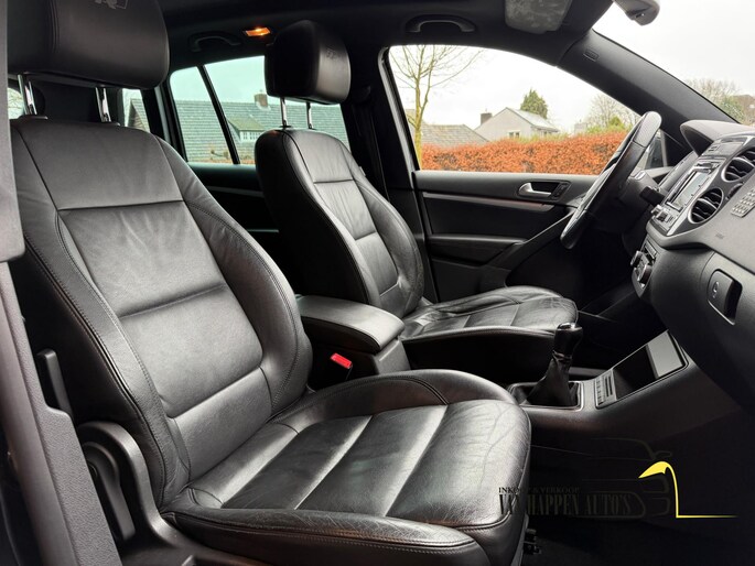 Dankzij de stuurwielbediening van het audiosysteem, kunt u veilig het verkeer in de gaten houden. Het spreekt voor zich dat een auto als deze ook van automatische airconditioning is voorzien. U kunt bij het inparkeren natuurlijk niet aan alle kanten ogen hebben. Daarom is deze Volkswagen Tiguan voorzien van parkeersensoren! De elektronische systemen in deze Volkswagen helpen u actief om comfortabeler te rijden. Een automatisch inschakelbare verlichting en een regensensor houden de omstandigheden onderweg in de gaten. De cruise control levert een mooie, gelijkmatige koers. Dat rijdt prettig. U bent in deze Volkswagen ook voorzien van centrale deurvergrendeling met afstandsbediening, boordcomputer en lederen versnellingspook.