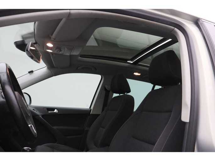 Stevig, solide en uitermate prettig in rijgedrag. Kortom: een echte Duitse auto. Zoals het een echte Volkswagen betaamt, verkeert deze Tiguan in uitstekende conditie. Met zijn benzinemotor en automatische transmissie is dit een prima auto voor nog vele kilometers. Voel die ruimte eens! Lekker veel licht door het elektrisch bediende glazen panoramadak. Met de krachtige xenonverlichting heeft u optimaal zicht in het donker. U wordt in deze auto ook getrakteerd op inch lichtmetalen velgen, warmtewerend glas, in hoogte verstelbare voorstoelen, verstelbare lendensteunen en snelheidsafhankelijke stuurbekrachtiging.