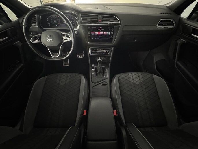 Geen mediterrane druktemaker, geen Franse charmeur. Deze Duitse auto straalt een en al stevige kwaliteit uit. Stalen onverzettelijkheid van topniveau, een en al kracht en betrouwbaarheid. Dankzij de R-Line styling heeft deze Volkswagen Tiguan de stijl en sportiviteit van een luxe coupé. Het zijn de degelijkheid van de constructie en de doordachtheid van het ontwerp die ervoor zorgen dat een Volkswagen jarenlang begeerlijk blijft. Zoals deze Tiguan, bijvoorbeeld. De aandrijving van deze Volkswagen wordt verzorgd door een viercilinder benzinemotor en een automatische transmissie. Boven uw hoofd schuiven de wolken zichtbaar voorbij door het elektrisch bediende glazen panorama dak. En kijk eens aan de achterzijde wat gemakkelijk: een eveneens elektrisch bedienbare achterklep! Zijwaartse g-krachten worden solide opgevangen door de sportstoelen. De koplampen geven het beste zicht ooit, met de matrix LED-verlichting. In deze auto profiteer jij onder andere ook van: 19 inch lichtmetalen velgen, dakspoiler, donker getint glas achter, in delen neerklapbare achterbank, LED-achterlichten en verstelbare lendensteunen.