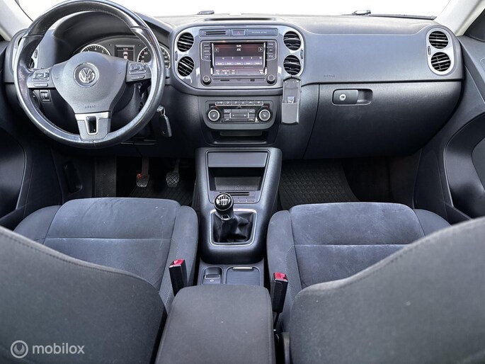 Het maakt niet uit welk model u kiest. Met een Volkswagen koopt u altijd een stijlvolle en praktische auto, zoals deze Tiguan bewijst. Het zijn de degelijkheid van de constructie en de doordachtheid van het ontwerp die ervoor zorgen dat een Volkswagen jarenlang begeerlijk blijft. Zoals deze Tiguan, bijvoorbeeld. De aandrijving komt voor rekening van een benzinemotor en een handgeschakelde versnellingsbak. Opvallend zijn de stoere sportstoelen, die zorgen voor een onwrikbare zit in de scherpe bochten. Ook 17 inch lichtmetalen velgen, donker getint glas achter, verstelbare lendensteunen en snelheidsafhankelijke stuurbekrachtiging horen tot de voorzieningen op deze auto.