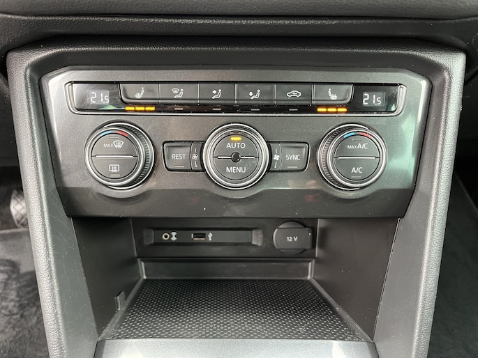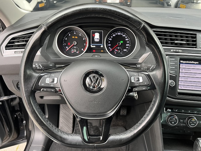 De Volkswagen Tiguan heeft een krachtig design, hij toont zelfverzekerd maar niet arrogant. Het is die uitstraling die deze auto zo aantrekkelijk maakt. Zijn rijkwaliteiten zijn navenant: achter het stuur van deze auto bent u iedere verkeerssituatie de baas, dankzij zijn krachtige motor en uitgekiende wegligging. De R-Line styling zorgt voor een kekke uitstraling van binnen en buiten. Niet voor niets is de vraag naar gebruikte Volkswagens zo groot, want de kwaliteit staat ook na een aantal jaren nog buiten kijf, zoals aan deze Tiguan duidelijk te zien is. Hij heeft een benzinemotor en een automatische transmissie. De sportstoelen geven het interieur van deze Tiguan een super strakke en sportieve uitstraling. De achterklep opent automatisch met een druk op de knop. Handig als u met volle handen staat. Tot de uitrusting van deze Volkswagen behoren ook 20 inch lichtmetalen velgen, sportonderstel, LED-koplampen, adaptief dempingsysteem, dakspoiler en extra getint glas.