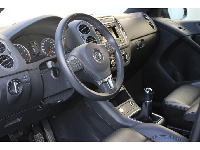 Bij Volkswagen draaien ze er niet omheen. Met dit exemplaar heb je een van de meest veelzijdige, complete auto's te pakken. Volkswagen-rijders weten het: een VW is gebouwd voor duurzaamheid en deze Tiguan ziet er dan ook uit als nieuw. Met zijn benzinemotor en handgeschakelde zesversnellingsbak is dit een prima auto voor nog vele kilometers. Deze auto verkoopt zichzelf. Ga maar na: een elektrisch bediend glazen panorama dak én een lederen interieur. Wat valt er dan nog te wensen? Comfort en een gevoel van luxe: dat geeft de heerlijke stoelverwarming. Tot de uitrusting behoren ook 17 inch lichtmetalen velgen, extra getint glas, verstelbare lendensteunen en snelheidsafhankelijke stuurbekrachtiging.