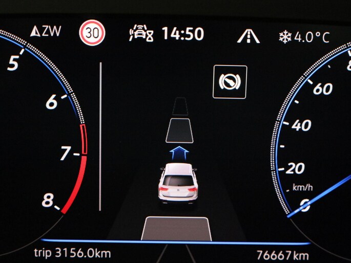 In deze auto zijn verschillende technologieën aanwezig die voor u het verkeer en de omgeving in de gaten houden en die desnoods ook kunnen remmen of bijsturen. De actuele snelheidslimiet, een inhaalverbod en andere verkeersborden. De verkeersborddetectie ondersteunt u tijdens elke rit. Indien u onbedoeld de rijstrook lijkt te verlaten, reageert het Lane-keeping systeem meteen en corrigeert. De veiligheidssystemen in deze auto nemen het zelfs waar als de bestuurder tekenen van vermoeidheid vertoont, en waarschuwen dan met een duidelijk signaal. Met voorzieningen als dodehoekdetectie, hill hold functie, brake assist en bandenspanningcontrolesysteem, bent u altijd veilig onderweg.