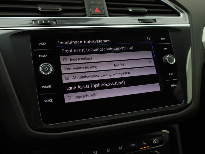 Zoals u mag verwachten van deze Volkswagen Tiguan is hij uitgerust met een reeks aan actieve veiligheidssystemen. Tijdens de rit hebt u altijd een bijrijder, want de verkeersbord-detectie leest de borden langs de weg en projecteert ze voor u op het instrumentarium. Onbedoeld buiten de rijstrook raken wordt voorkomen door het Lane-keeping systeem. Deze Volkswagen Tiguan blijft altijd alert. Zo wordt gebruik gemaakt van forward collision warning. Bij het mogelijke risico op een aanrijding met een voertuig voor u, slaat het systeem alarm. Verder is deze auto uitgerust met front assist, hill hold functie, brake assist, vermoeidheidsherkenning en bandenspanningcontrolesysteem.