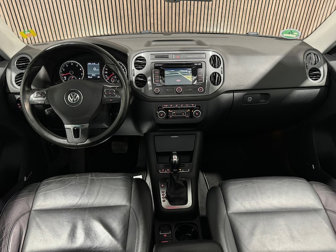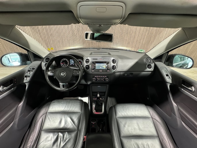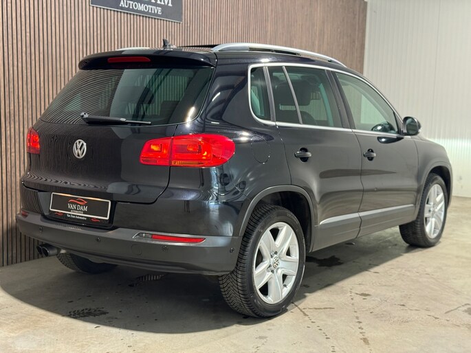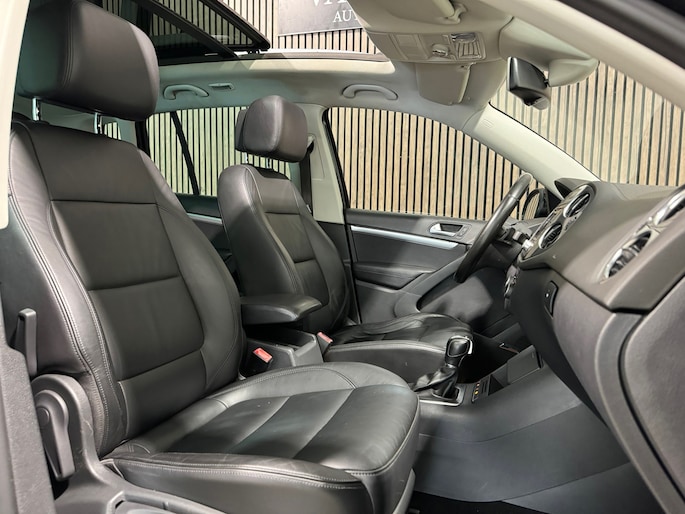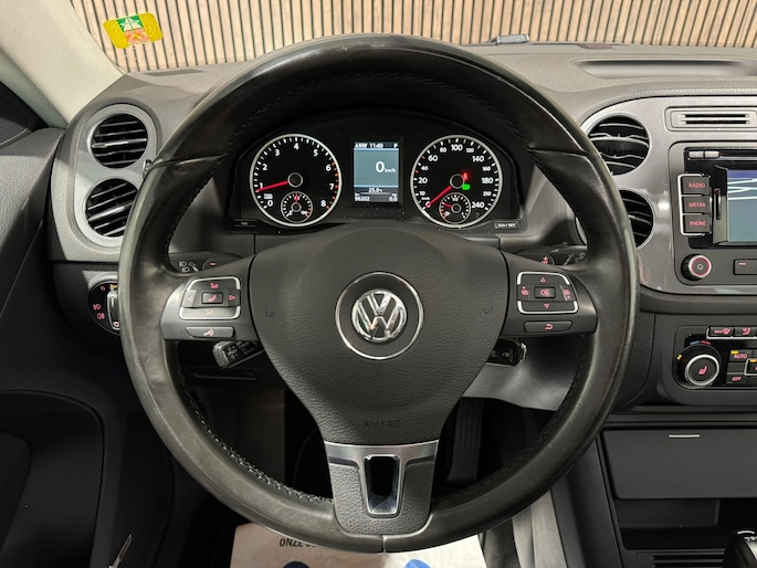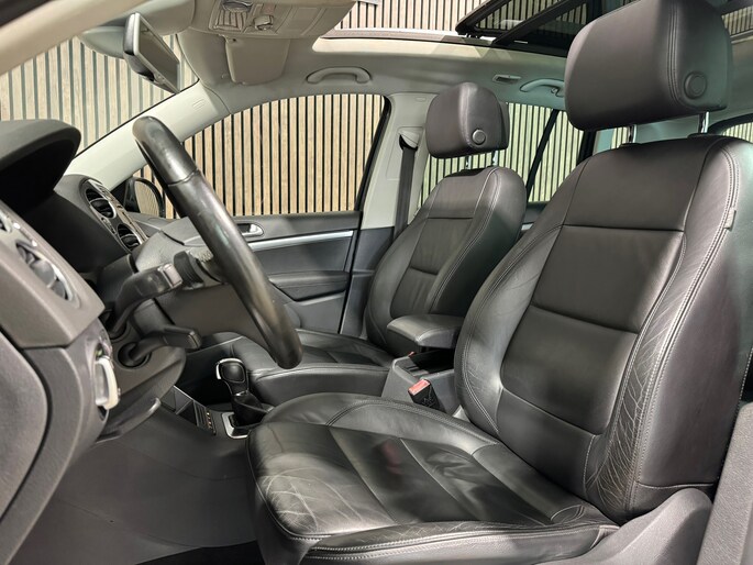 Volkswagen-rijders waarderen hun merk om de degelijkheid van de techniek en de uitmuntende rijkwaliteiten. Een Volkswagen is bovendien comfortabel en ruim, omdat hij altijd is ontworpen met de inzittenden als uitgangspunt. Een Tiguan zoals deze bijvoorbeeld, biedt ruim comfort voor vijf inzittenden. Zoals het een echte Volkswagen betaamt, verkeert deze Tiguan in uitstekende conditie. De uitstekende prestaties van deze auto komen van de viercilinder motor en de automatische transmissie. Een lederen interieur staat al decennia voor stijl en klasse. Ook bij deze Volkswagen Tiguan. Behaaglijk onderweg zijn? Als bestuurder geniet u van de verwarmbare voorstoelen. Net als uw bijrijder! Zijwaartse g-krachten worden solide opgevangen door de sportstoelen. Het elektrisch bediende panoramadak zorgt voor maximale lichtinval en frisse lucht in het interieur. Xenonverlichting zorgt voor een krachtige en heldere lichtbundel. Het brandstofbesparende start/stop systeem schakelt de motor uit als u stilstaat. Natuurlijk behoren 18 inch lichtmetalen velgen, sportonderstel, aluminium dakrailing, dakspoiler, elektrisch inklapbare buitenspiegels en extra getint glas ook tot de uitrusting van deze complete auto.