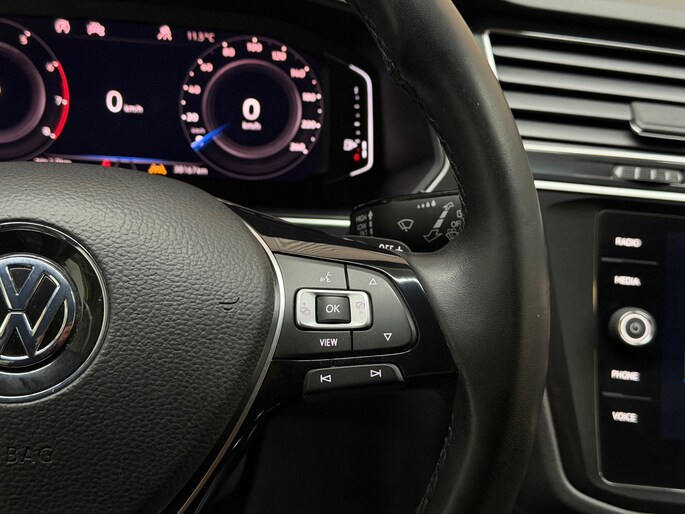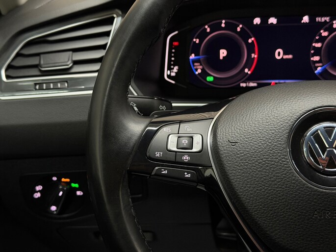 Zoals u mag verwachten van deze Volkswagen Tiguan is hij uitgerust met een reeks aan actieve veiligheidssystemen. In het instrumentarium ziet u tijdens de rit ook de belangrijkste verkeersborden aangegeven, die de auto automatisch voor u leest. Het Lane-keeping systeem zorgt dat u mooi binnen de lijntjes blijft. Ongemerkt buiten de rijstrook komen is er niet meer bij. In een noodsituatie waarschuwt forward collision warning bij een dreigende aanrijding met een voorligger. Met voorzieningen als dodehoekdetectie, accident avoidance system, hill hold functie, brake assist, vermoeidheidsherkenning en bandenspanningcontrolesysteem, bent u altijd veilig onderweg.