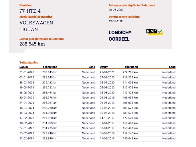Kilometerstand gecontroleerd