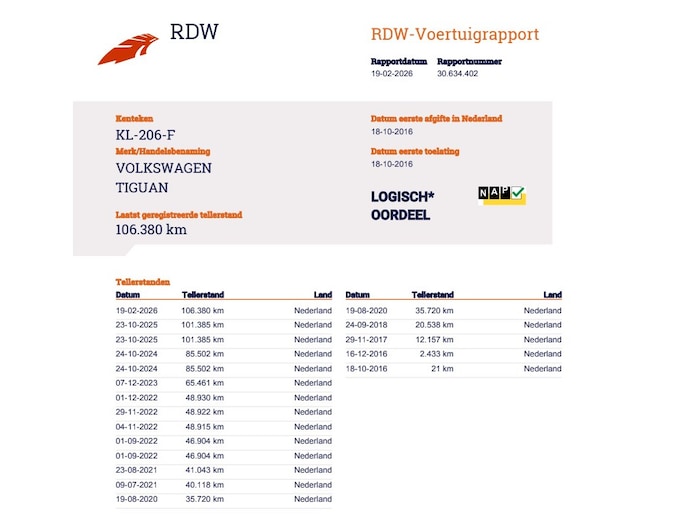 Kilometerstand gecontroleerd