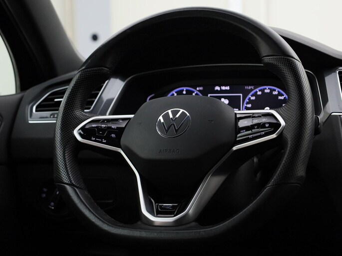 Hij zorgt voor een ontspannen rijervaring, deze Volkswagen Tiguan. Het is een auto uit 2021. Ja, hiermee ga je opvallen. De R-Line styling maakt dat je nooit ongemerkt voorbij gaat. Een belangrijke eigenschap van iedere Volkswagen is zijn duurzaamheid. Dat ziet u ook aan deze Tiguan. In deze auto vindt u een benzinemotor en een automatische transmissie. Op koude en donkere dagen zijn de verwarmbare voorstoelen een uitkomst. Schouders en onderrug krijgen een VIP-behandeling door de comfortstoelen. Voor extra lichtinval en een frisse luchtstroom zorgt het elektrisch bediende panoramadak. De elektrische achterklep opent met een druk op de knop, zodat u gemakkelijk toegang heeft tot de bagageruimte. Een verwarmd stuurwiel overbodige luxe? Wacht maar tot het kouder wordt! Daglicht bij nacht? De koplampen met matrix LED-verlichting zorgen ervoor. Tot de voorzieningen van deze auto behoren 19 inch lichtmetalen velgen, dakspoiler, donker getint glas achter, in delen neerklapbare achterbank, LED-achterlichten en verstelbare lendensteunen.