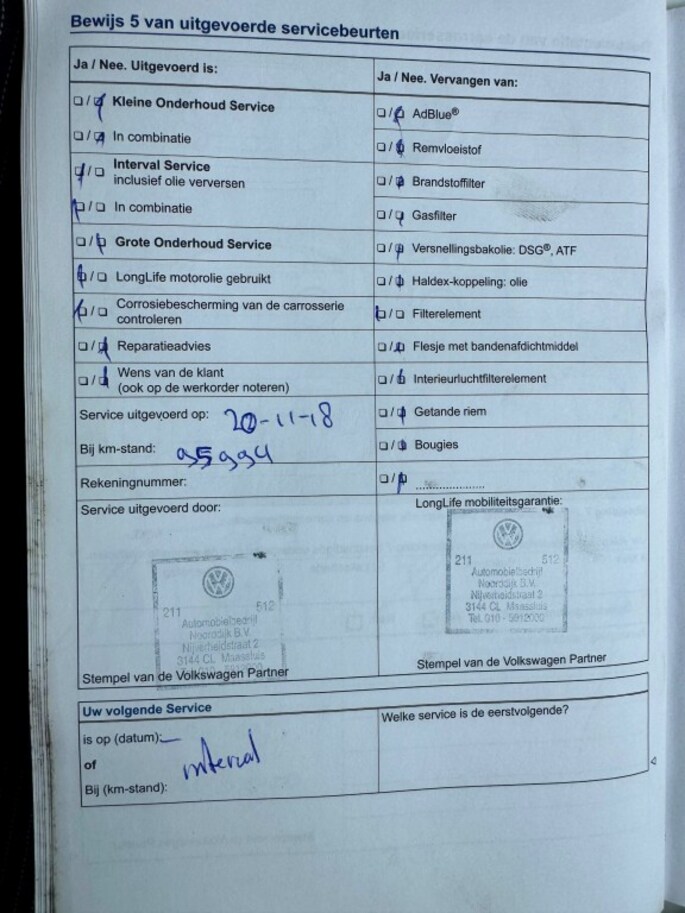 Kilometerstand gecontroleerd