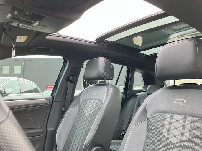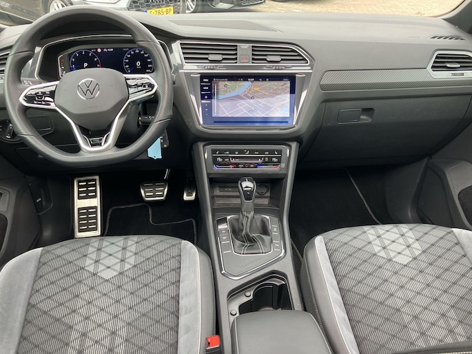 Een Volkswagen pik je er altijd uit, want je herkent hem aan zijn dynamische styling, aan zijn degelijke bouw en aan zijn sportieve lijnen. Dat geldt ook voor deze Tiguan, die met zijn eigentijdse design helemaal past in het moderne straatbeeld. Stoer en sportief, dat geeft de R-Line styling aan uitstraling. Het zijn de degelijkheid van de constructie en de doordachtheid van het ontwerp die ervoor zorgen dat een Volkswagen jarenlang begeerlijk blijft. Zoals deze Tiguan, bijvoorbeeld. De aandrijving van deze Volkswagen wordt verzorgd door een viercilinder benzinemotor en een automatische transmissie. Een heerlijk zonnetje, of indrukwekkende wolkenpartijen? Bekijk ze onbelemmerd door het elektrisch bediende glazen panorama dak. Met één klik open en dicht, net als de elektrisch bedienbare achterklep. Onderdeel van de uitgebreide uitrusting van deze auto is stoelverwarming. Al is het nog zo fris, koude handen zijn verleden tijd door het verwarmd stuurwiel. De koplampen met matrix LED-verlichting zijn het hoogst haalbare op het gebied van autoverlichting. Bij de zeer complete uitrusting van deze auto behoren ook 19 inch lichtmetalen velgen, geluidsisolerende ramen, dakspoiler, in delen neerklapbare achterbank, LED-achterlichten en verstelbare lendensteunen.