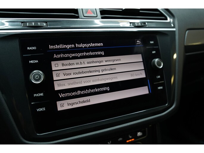 Zoals u mag verwachten van deze Volkswagen Tiguan is hij uitgerust met een reeks aan actieve veiligheidssystemen. De actuele snelheidslimiet, een inhaalverbod en andere verkeersborden. De verkeersborddetectie ondersteunt u tijdens elke rit. Het Lane-keeping systeem zorgt dat u mooi binnen de lijntjes blijft. Ongemerkt buiten de rijstrook komen is er niet meer bij. Botsingen met een voorligger gebeuren relatief vaak. De forward collision warning slaat tijdig alarm als dat risico ontstaat, zodat u kunt ingrijpen. U bent mede dankzij accident avoidance system, hill hold functie, brake assist, vermoeidheidsherkenning en bandenspanningcontrolesysteem steeds veilig onderweg.