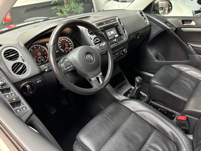 Natuurlijk, een Volkswagen herken je altijd. Want een Volkswagen onderscheidt zich met zijn kwaliteit, zijn doordachte techniek en zijn geweldige rijeigenschappen. En dat geldt ook voor deze Tiguan. Volkswagen-rijders weten het: een VW is gebouwd voor duurzaamheid en deze Tiguan ziet er dan ook uit als nieuw. De aandrijving van deze Volkswagen wordt verzorgd door een viercilinder motor en een handgeschakelde versnellingsbak. Stijl en comfort krijg je erbij in de vorm van een fraai lederen interieur. Een weldaad voor u en uw bijrijder: deze Volkswagen Tiguan heeft verwarmbare voorstoelen. De sportstoelen zorgen ervoor dat u goed en comfortabel zit, ook als het gas erop gaat. Licht, lucht, ruimte en gemak wordt verzorgd door het elektrisch bedienbare glazen panoramadak. Bij de uitrusting van deze Volkswagen horen onder meer 17 inch lichtmetalen velgen, dakspoiler, extra getint glas, verstelbare lendensteunen en snelheidsafhankelijke stuurbekrachtiging.