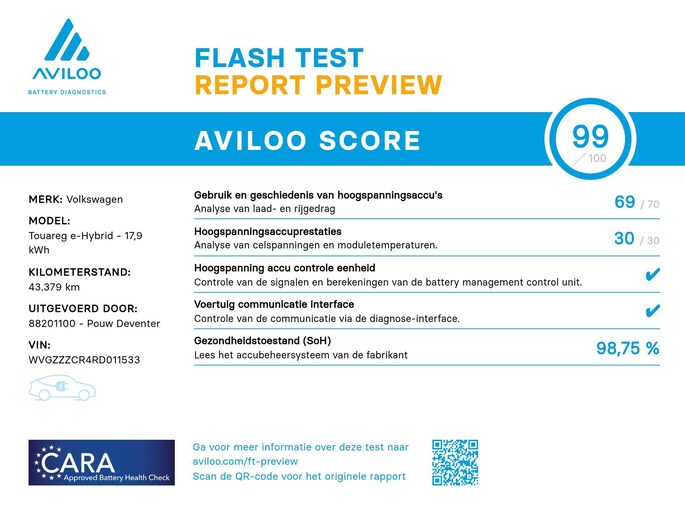 Deze Volkswagen Touareg is volgens onze strenge dealereisen rijklaar gemaakt. Dat betekent dat hij klaarstaat voor vertrek en je de auto dezelfde dag na aanschaf in ontvangst kan nemen!